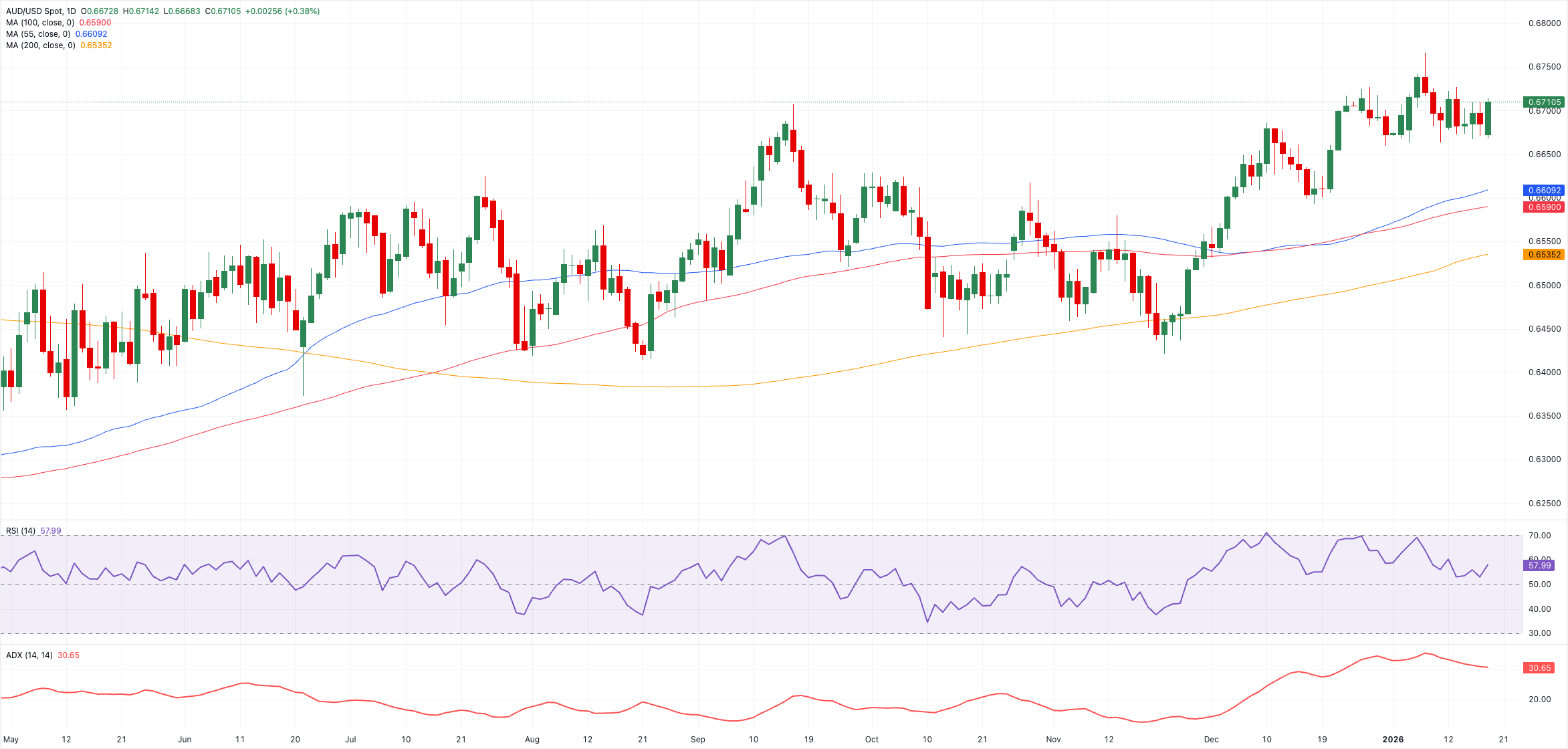 - AUD/USD steigt auf Mehrtageshochs und erobert den Bereich über 0,6700 zurück.