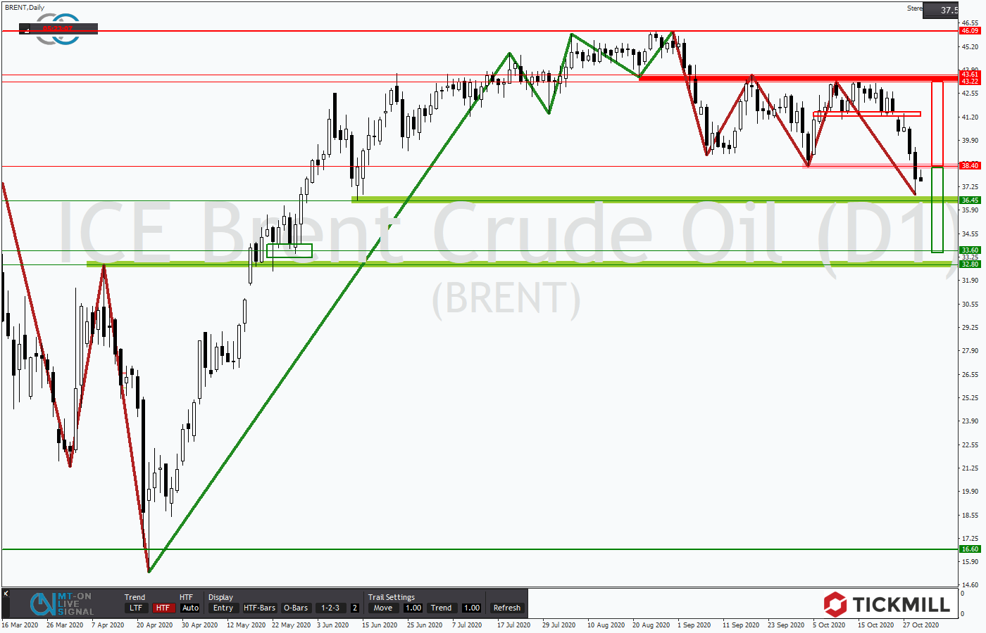 Ein Schwungvoller Abverkauf am Ölmarkt hat die Preise für ein Fass der Sorte Brent nahe an die wichtige Unterstützung um 36,45 USD getrieben. Diese Gesamtkonstellation gibt nun zum einen etwas Spielraum für eine Gegenbewegung. Zum anderen trägt sie mittelfristig das Potential für einen Test der Marke um 33 USD in sich. Die wichtigsten Fakten finden Sie in Schrift und Bild sowie in den Videobesprechung mit Tickmill-Analyst Mike Seidl.