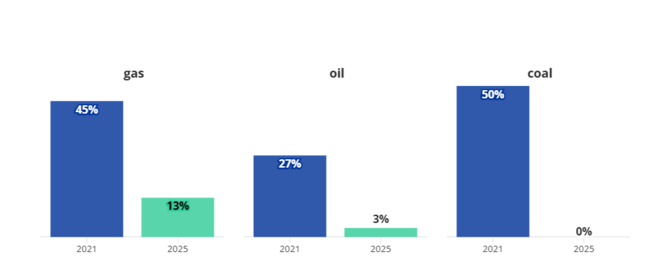 Derzeit ist der Anteil von russischem Gas, Öl und Kohle an den Energieimporten der EU zwischen 2021 und 2025 erheblich gesunken, aber russisches Gas und Öl sind noch nicht vollständig abgeschafft, so die Europäische Kommission.