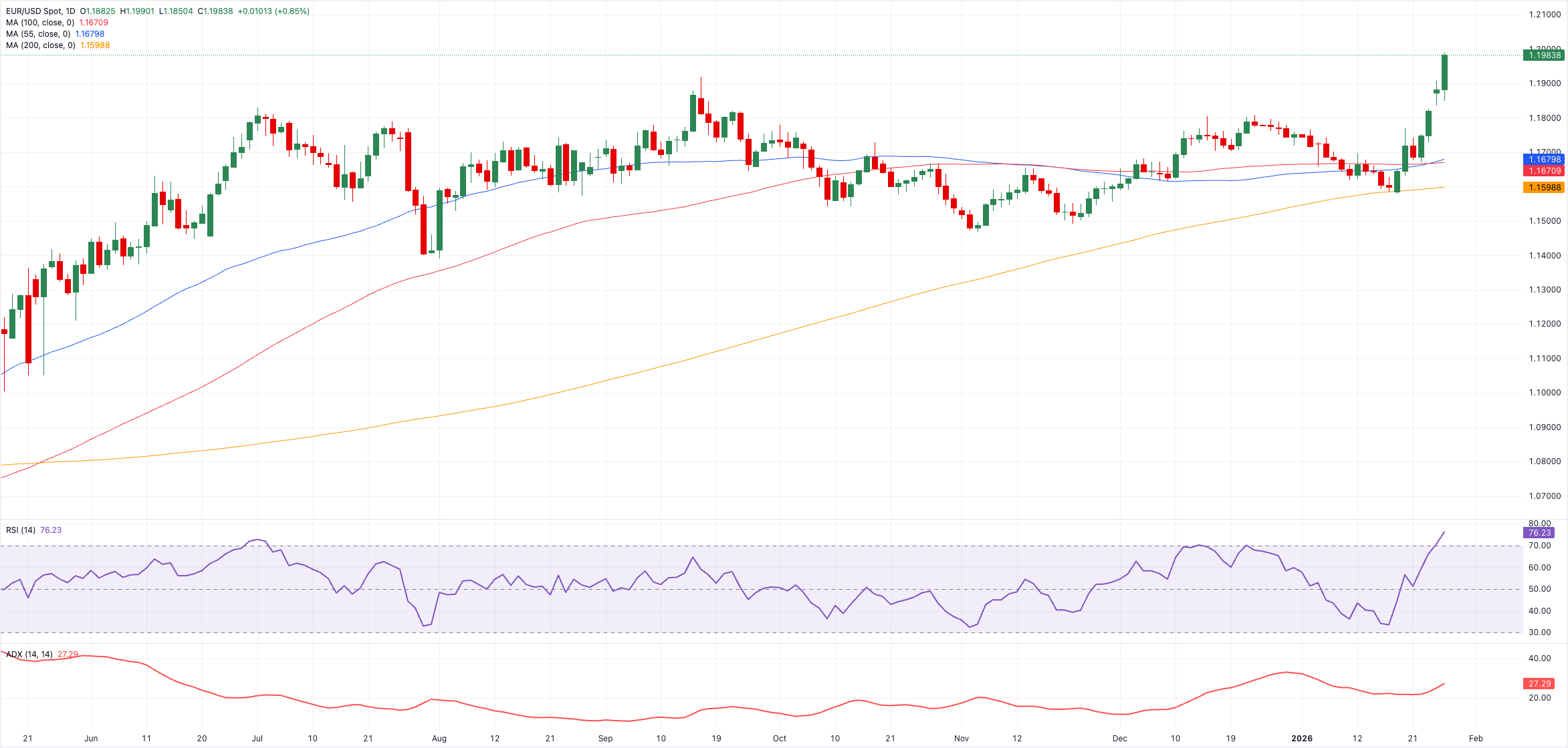 EUR/USD behält eine solide Aufwärtsneigung bei und navigiert auf Niveaus, die zuletzt im Sommer 2021 gesehen wurden, während er seine Aufmerksamkeit auf die Schlüsselmarke von 1,2000 richtet.