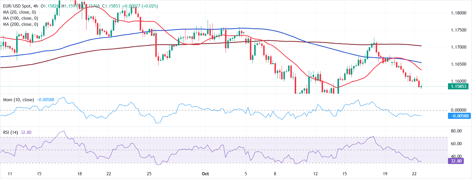 Der 4-Stunden-Chart zeigt, dass die technischen Indikatoren ihre Abwärtskraft in der Nähe überverkaufter Werte verloren haben, aber keine Anzeichen einer Abwärtserschöpfung zeigen. Gleichzeitig entwickelt sich EUR/USD unter all seinen gleitenden Durchschnitten, wobei der 20 SMA bärische Stärke unter den längeren gewinnt, was auf ein erhöhtes Verkaufsinteresse hinweist. Das Paar sprang in den letzten Wochen mehrmals scharf von der 1,1540 ab und machte die Region zu einem relevanten Unterstützungsbereich. Ein Durchbruch darunter könnte das Paar in Richtung des Bereichs von 1,1470, einem langfristigen statischen Unterstützungsbereich, weiter fallen lassen.