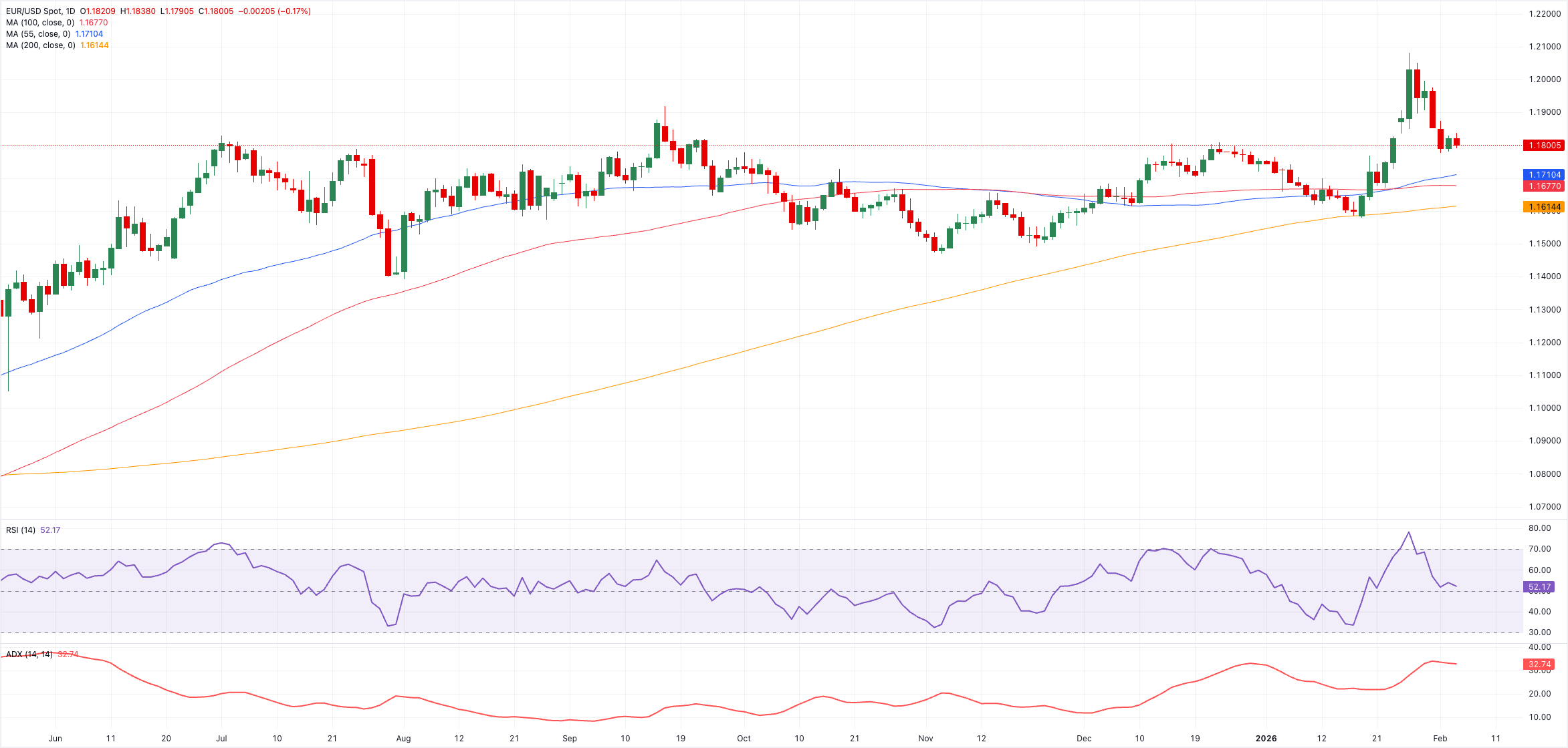 Der Verlust des Februarbodens bei 1,1775 (2. Februar) könnte die Tür zu einem Besuch der temporären 55-Tage- und 100-Tage-SMAs bei 1,1703 bzw. 1,1678 öffnen. Weiter südlich sieht sich EUR/USD der nächsten Unterstützung am entscheidenden 200-Tage-SMA bei 1,162 gegenüber, vor dem November 2025-Boden bei 1,1468 (5. November) und dem August 2025-Boden bei 1,1391 (1. August).