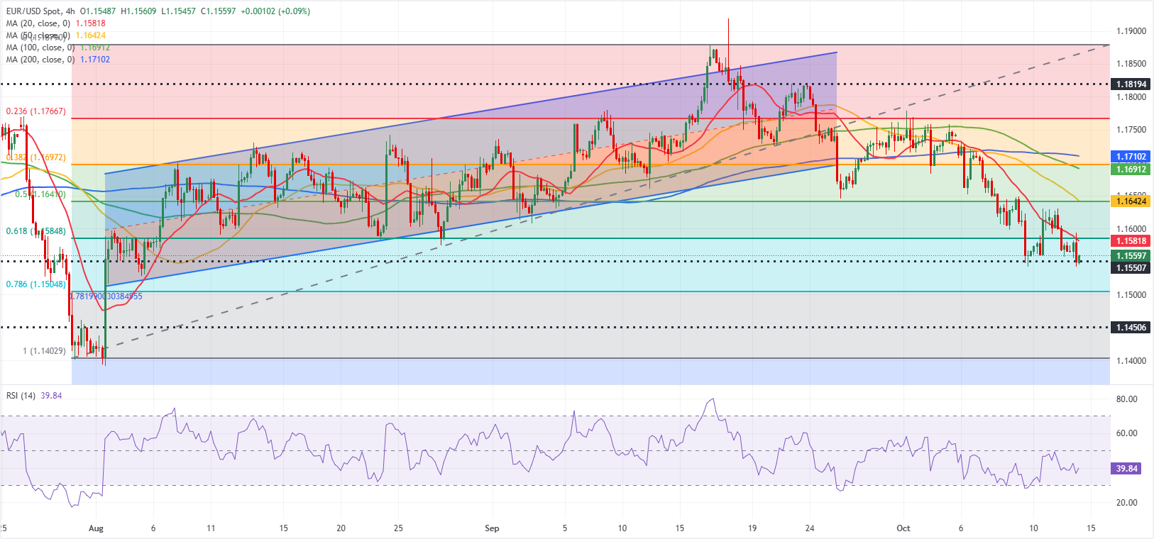 Der Relative Strength Index (RSI) auf dem 4-Stunden-Chart bleibt deutlich unter 50, und EUR/USD handelt unter dem 20-Perioden Simple Moving Average (SMA), der derzeit bei 1,1580 liegt, nachdem es am Montag nicht gelungen ist, sich darüber zu stabilisieren, was eine bärische Haltung widerspiegelt.