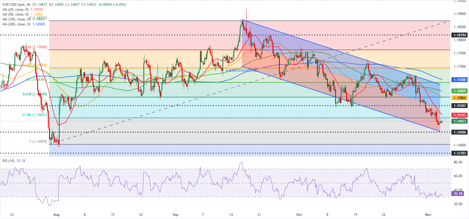 EUR/USD zeigt eine Erholung, bleibt jedoch am Mittwochmorgen in Europa leicht unter 1,1500, nachdem es den fünften aufeinanderfolgenden Tag im negativen Bereich geschlossen hat und am Dienstag mit 1,1473 den schwächsten Stand seit Anfang August erreicht hat. Da der Marktfokus auf hochrangige Datenveröffentlichungen aus den USA gerichtet ist, zeigt der technische Ausblick des Paares keine Anzeichen für eine Umkehr.