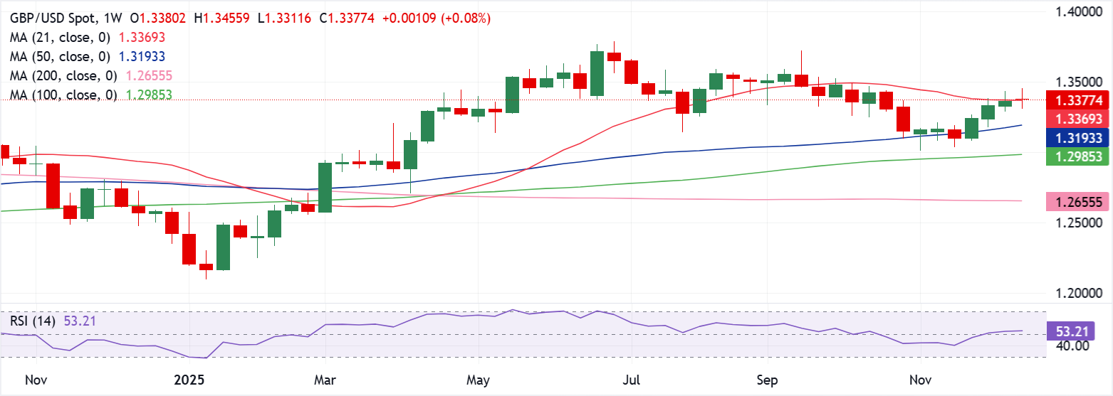 Der Greenback konnte jedoch im dritten Quartal Fuß fassen und stoppte den Anstieg des Cable, bevor er in den letzten drei Monaten von 2025 erneut an Boden verlor. Dies ermöglichte es GBP/USD, wieder an Fahrt zu gewinnen und bis Mitte Dezember um die runde Zahl von 1,3400 zu handeln, was einem jährlichen Anstieg von etwa 6,5% entspricht.