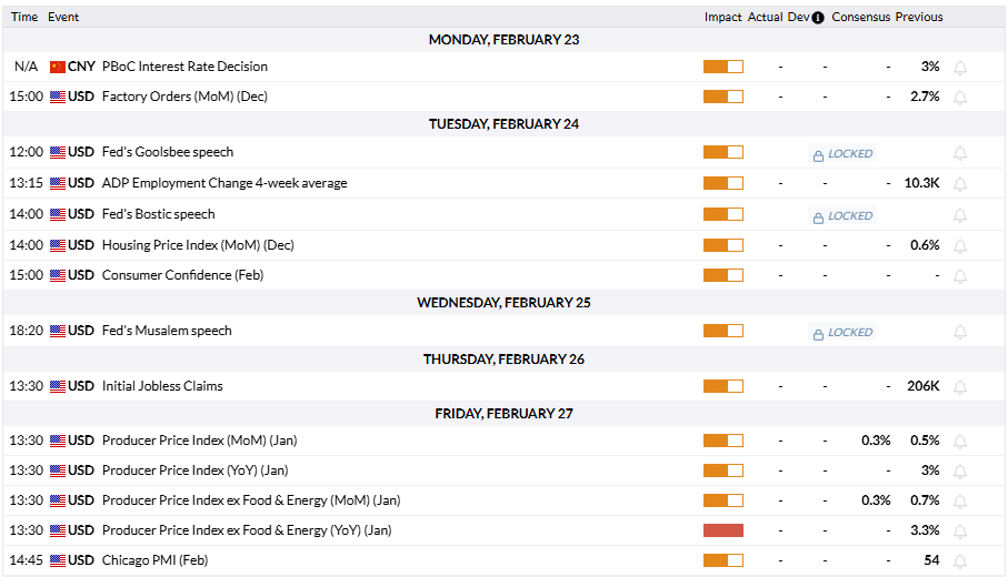 Der US-Dollar (USD) Index behält sein bullisches Momentum bei und schwankt nahe 98,00, nachdem er am Donnerstag sein höchstes Niveau seit fast einem Monat erreicht hat. Die vorläufigen PMI-Daten (Einkaufsmanager-Index) für Februar aus Deutschland, der Eurozone, dem Vereinigten Königreich und den USA werden am Freitag im Wirtschaftskalender aufgeführt. Wichtiger ist, dass das US Bureau of Economic Analysis die erste Schätzung der Wachstumsdaten des Bruttoinlandsprodukts (BIP) für das vierte Quartal sowie die Zahlen zum Preisindex der persönlichen Konsumausgaben (PCE) für Dezember veröffentlichen wird.