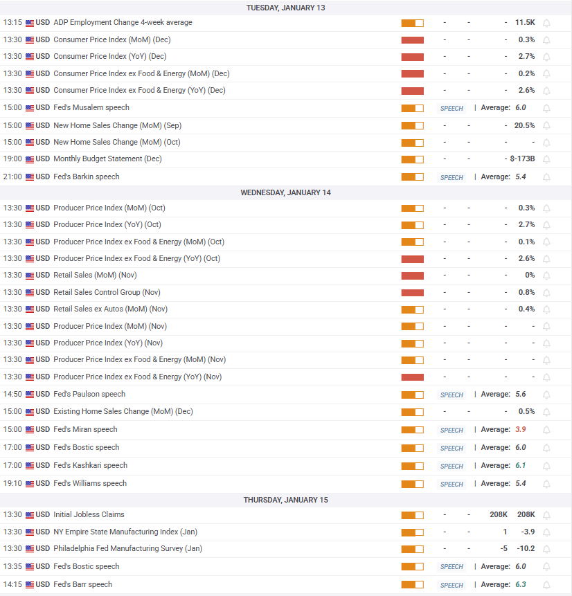 Der Wirtschaftskalender wird in Bezug auf Datenveröffentlichungen relativ leicht sein. Am Dienstag wird das BLS die Verbraucherpreisindex (CPI)-Daten für Dezember veröffentlichen. Auch die Einzelhandelsumsätze und der Erzeugerpreisindex für November werden im US-Wirtschaftsdatenkalender aufgeführt, die von den Marktteilnehmern wahrscheinlich weitgehend ignoriert werden.