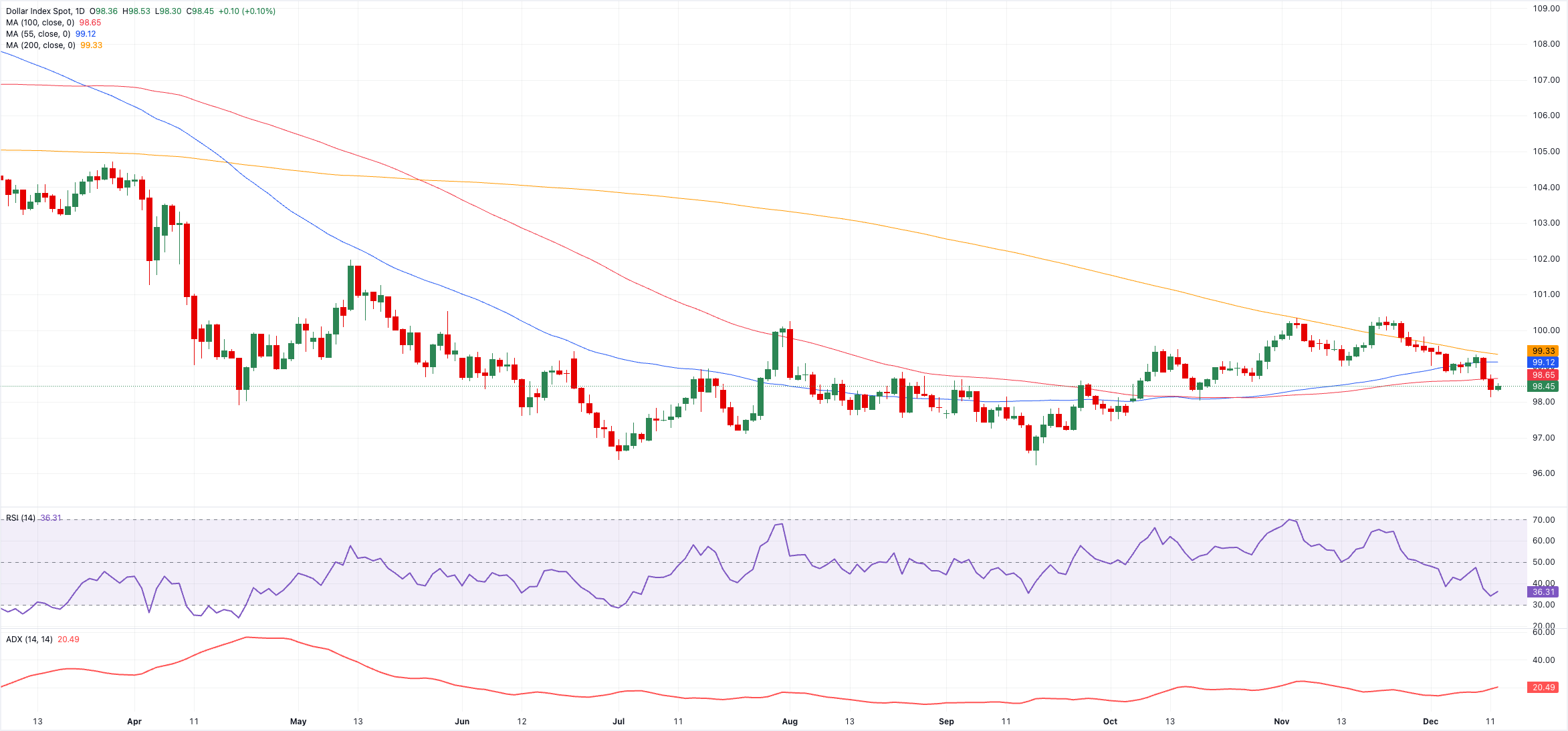 Auf der Abwärtsseite wird die erste Unterstützung am Dezember-Basisniveau bei 98,13 (11. Dezember) gesehen. Ein nachhaltiger Bruch unter dieses Niveau würde wahrscheinlich die Tür zu einem Rückgang zum wöchentlichen Tief bei 98,03 (17. Oktober) öffnen, wobei eine weitere Schwäche den Index möglicherweise bis zum Tiefpunkt von 2025 bei 96,22 (17. September) ziehen könnte. Darunter würde der Fokus auf das Februar-2022-Tal bei 95,13 (4. Februar) und letztlich auf den 2022-Boden bei 94,62 (14. Januar) gerichtet.