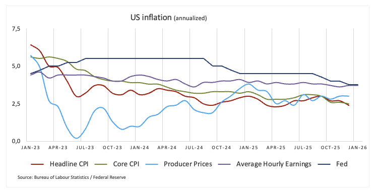 Das US Bureau of Labor Statistics wird am Freitag die Daten zum Verbraucherpreisindex für Januar veröffentlichen, die durch die kurze und teilweise Schließung der US-Regierung verzögert wurden. Der Bericht wird voraussichtlich zeigen, dass der Inflationsdruck moderat nachgelassen hat, aber weiterhin über dem 2%-Ziel der Federal Reserve liegt.