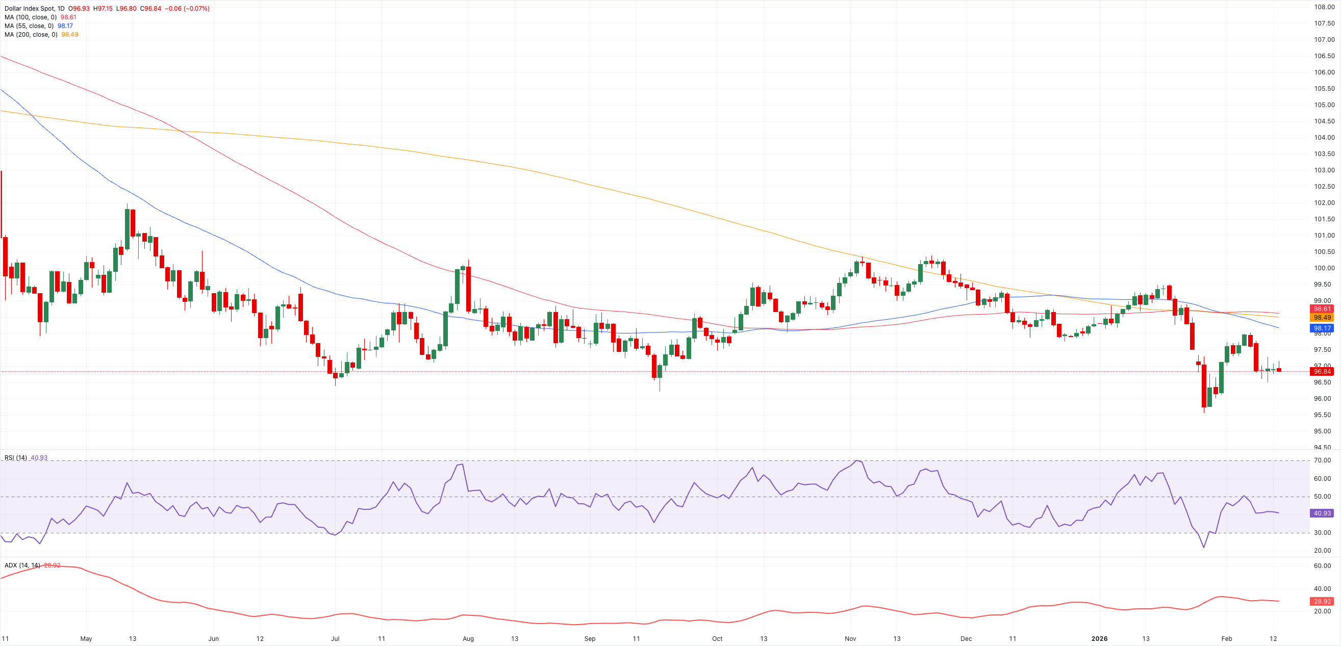 Auf der anderen Seite könnte der Verlust des Februarbodens bei 96,49 (11. Februar) einen Test des 2026er-Tiefs bei 95,56 (27. Januar) wieder ins Blickfeld rücken, vor dem Februar 2022-Basiswert bei 95,13 und dem 2022er-Tief bei 94,62 (14. Januar).