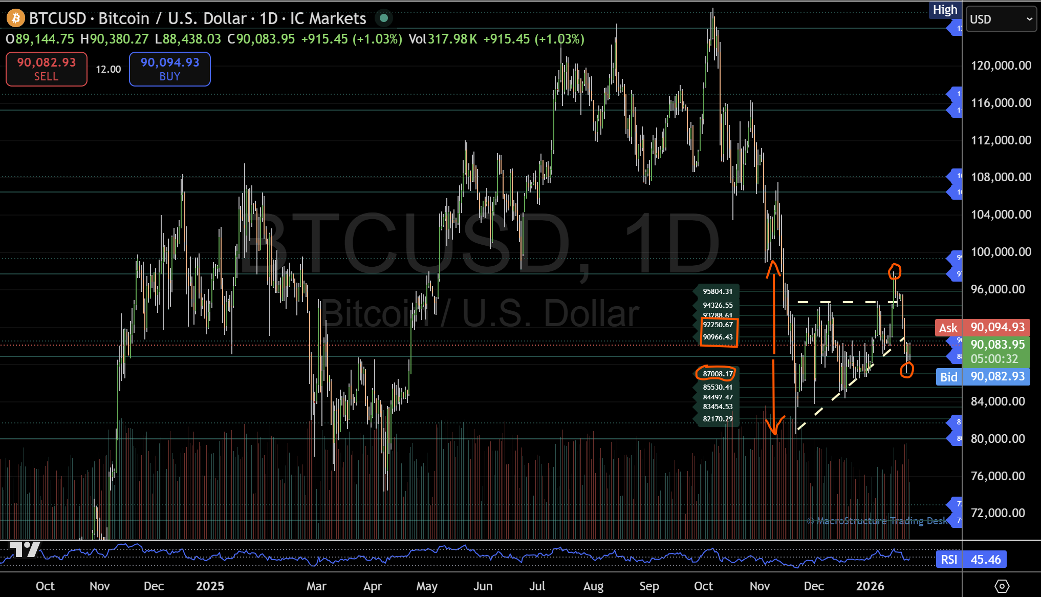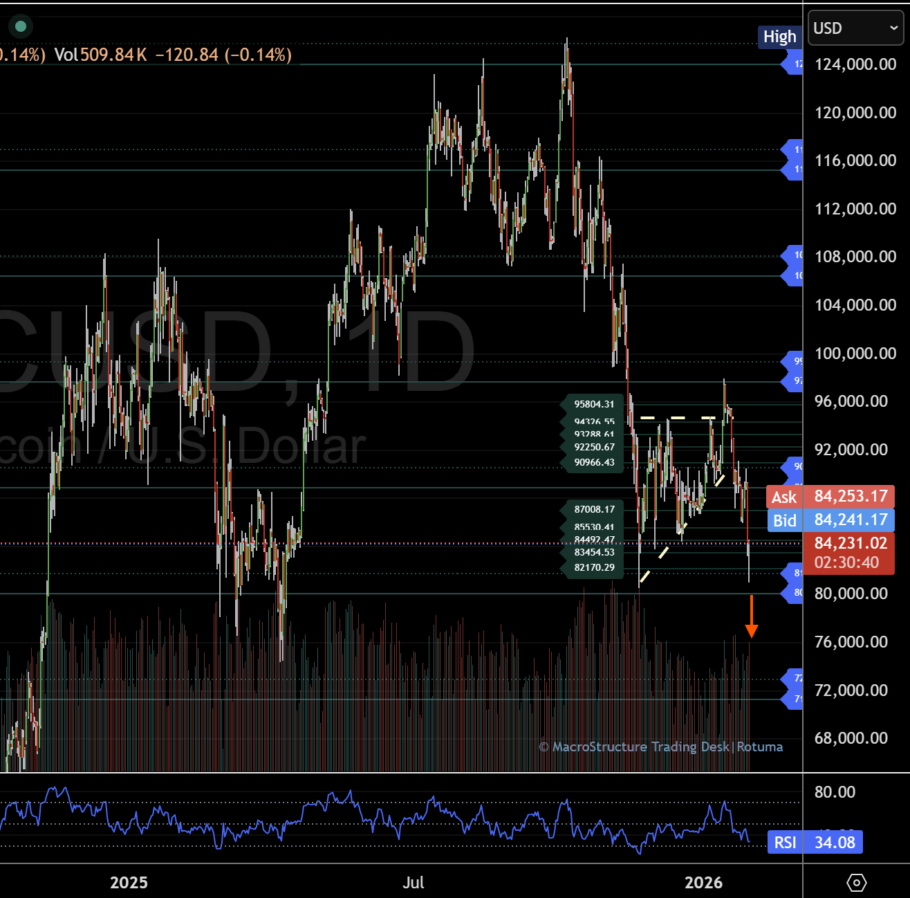 Ein klarer Bruch unter die Marke von 80.000 würde einen Übergang in die nächste, tiefer liegende strukturelle Phase signalisieren und den aktuellen Zwei-Wege-Bereich nach unten verlassen.