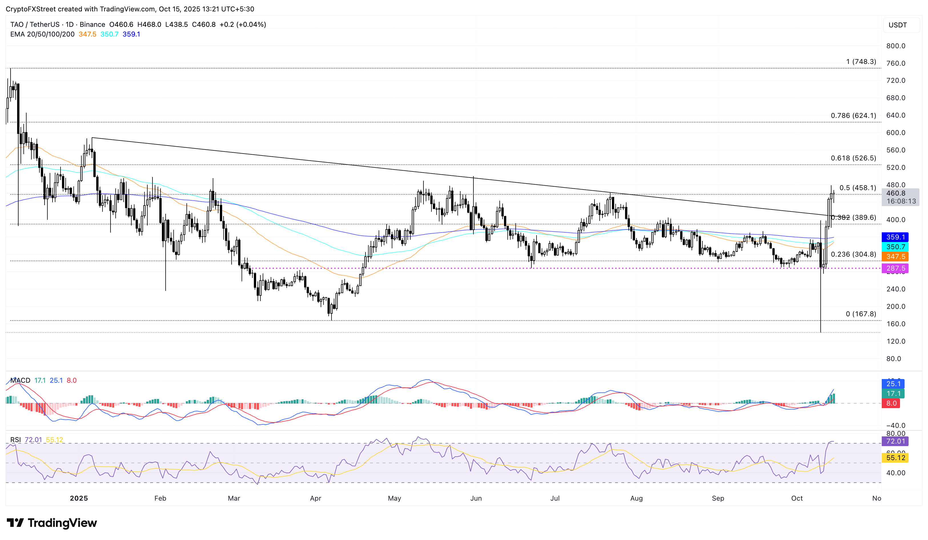 - Die Bittensor-Rallye hält sich über 450 USD, nach vier aufeinanderfolgenden Tagen im Aufwärtstrend.