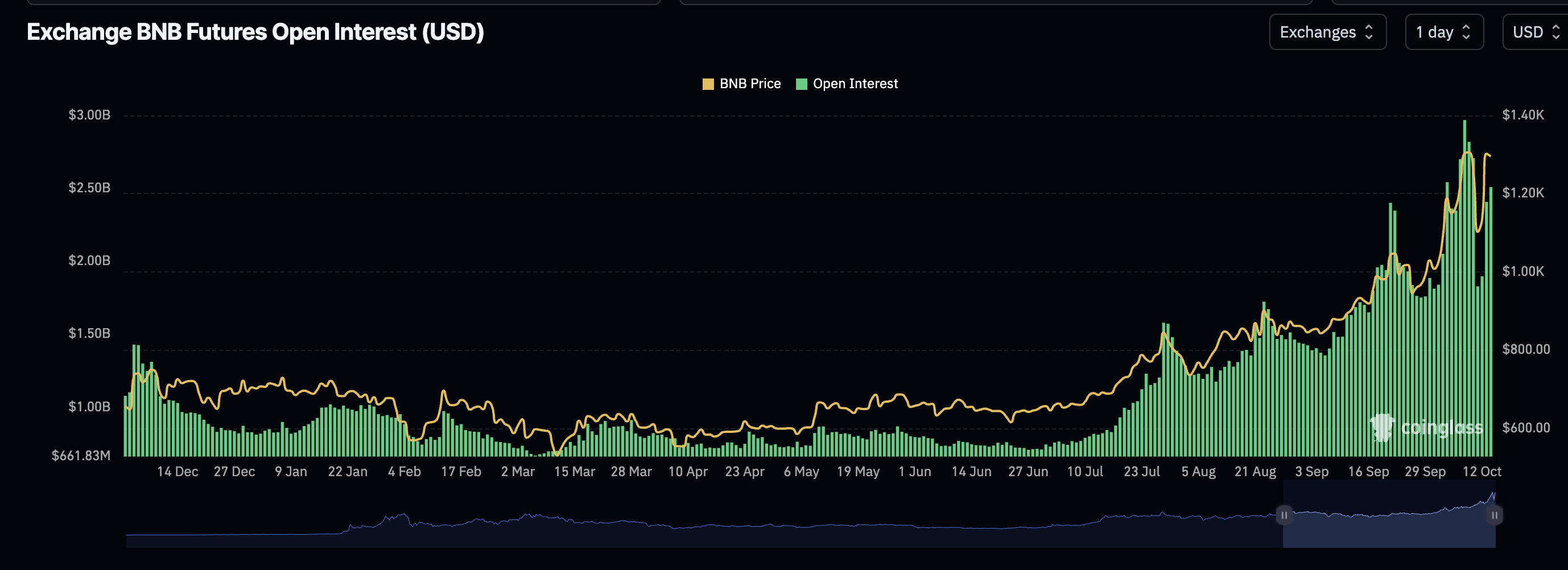 Der BNB-Preis handelt nahe seinem Rekordhoch von 1.375 USD, während sich der Kryptomarkt allgemein nach dem Ausverkauf der letzten Woche erholt. China Renaissance Holdings plant, 600 Millionen USD zu sammeln, um eine BNB-basierte digitale Schatzkammer einzurichten.