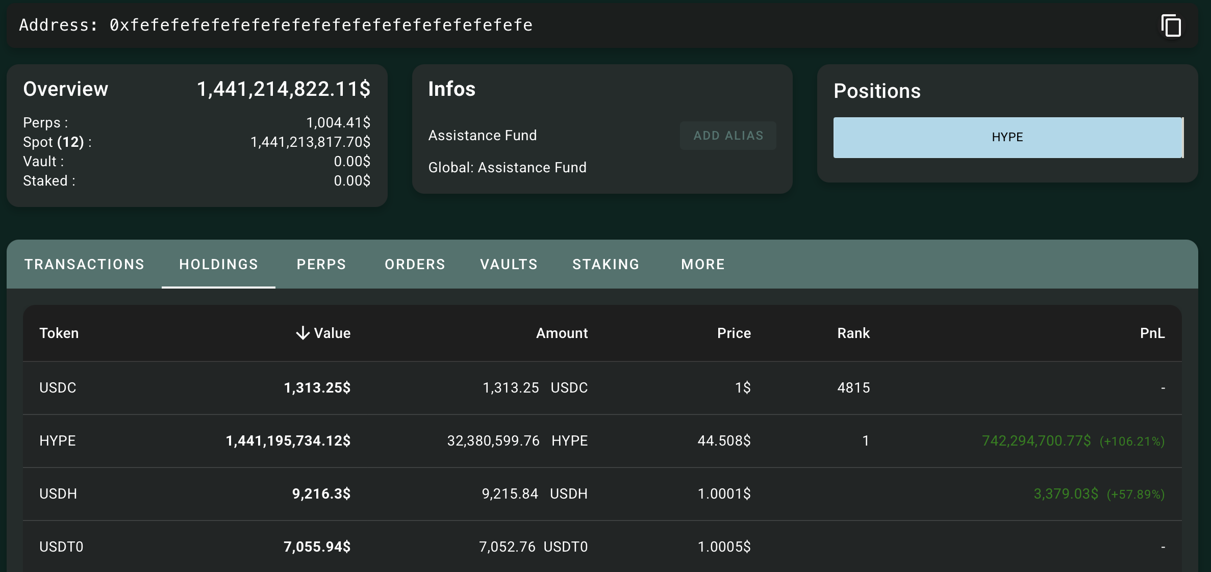 Hyperliquid Unterstützungsfonds. Quelle: HypurScan.