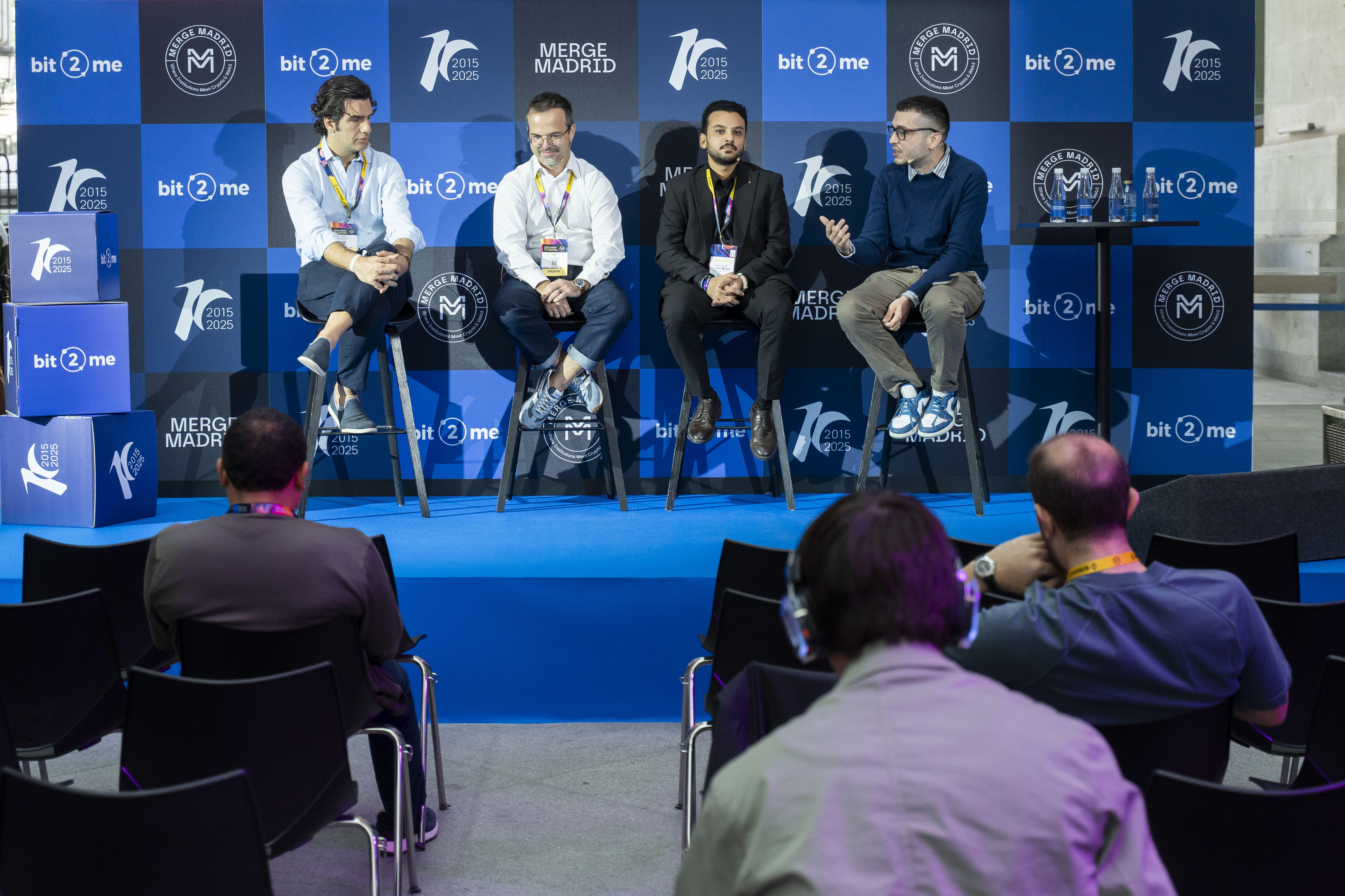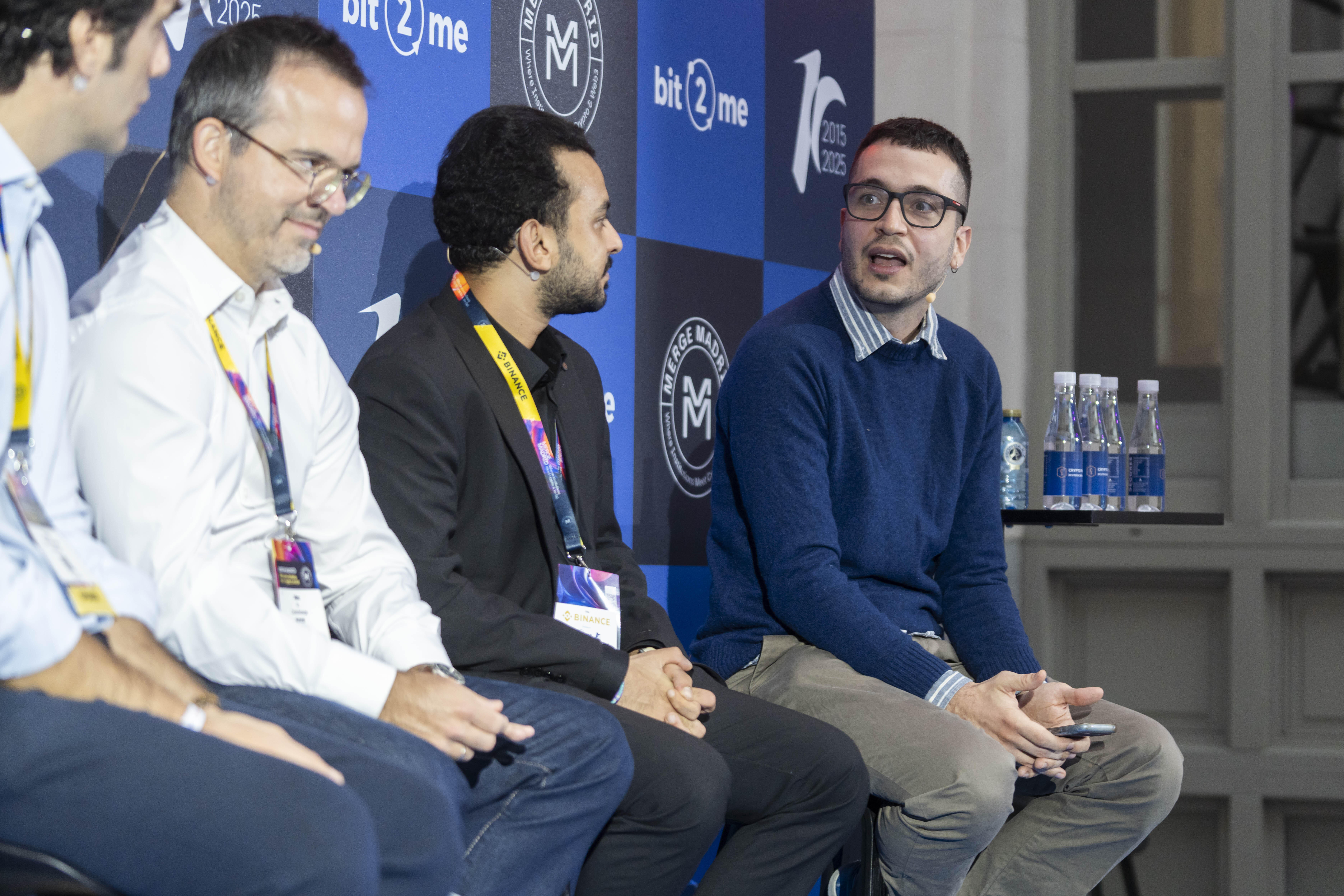 Karim AbdelMawla in einer Podiumsdiskussion über die Zukunft des Asset Managements mit dem Chefredakteur von FXStreet, Jordi Martínez. Quelle: Merge Madrid.