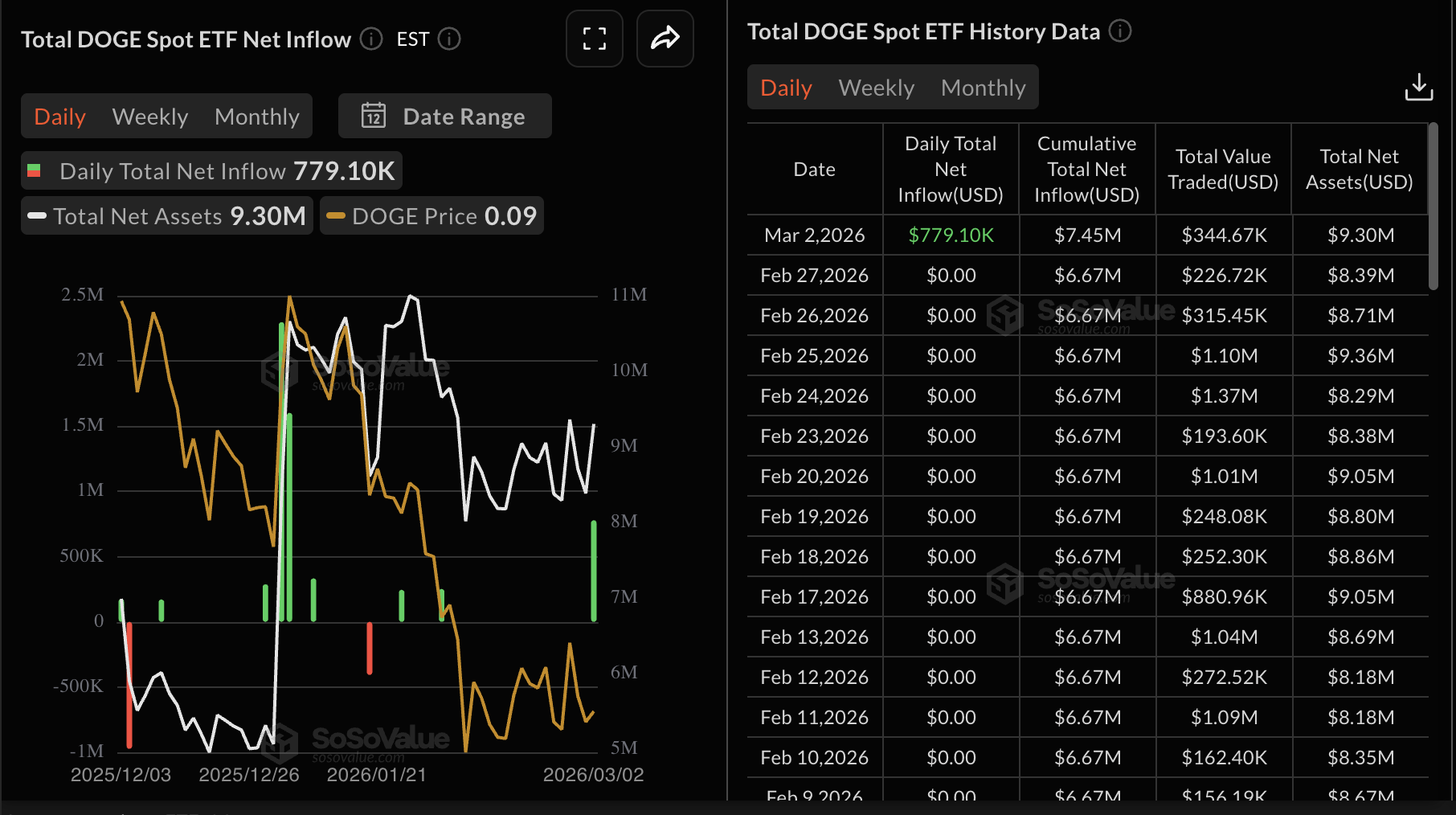 Dogecoin ETF-Flüsse | Quelle: SoSoValue