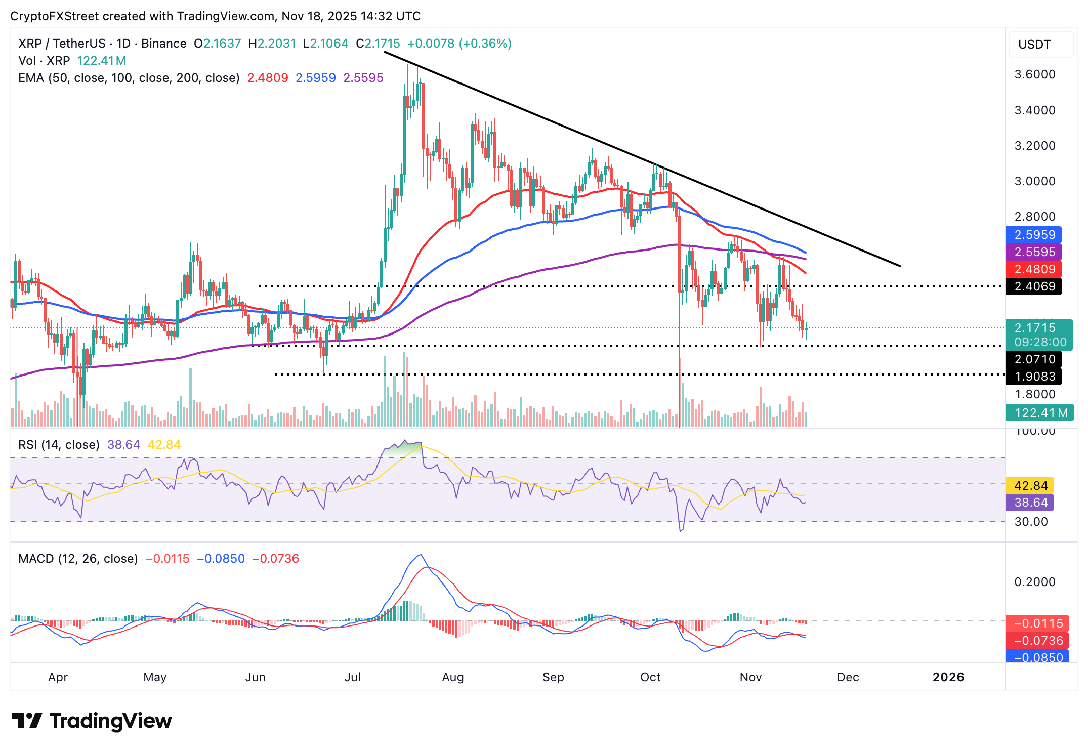 Trotz aller Risikofaktoren ist die Situation nicht völlig aussichtslos. Sollte die Nachfrage in den kommenden Sitzungen wieder anziehen, könnte XRP stabilisieren und erneut die 50-Tage-EMA bei 2,49 US-Dollar ansteuern. Genau an dieser Stelle würde sich entscheiden, ob XRP das Potenzial für eine breitere Erholung besitzt.