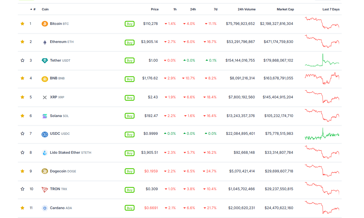 Bitcoin (BTC) sieht sich zunehmender Volatilität gegenüber und fällt am Dienstag unter 112.000 USD. Altcoins, einschließlich Ethereum (ETH) und Ripple (XRP), erweitern die Verluste zusammen mit BTC, wobei ETH um die 4.000 USD handelt und XRP unter dem kurzfristigen Widerstand von 2,50 USD liegt.