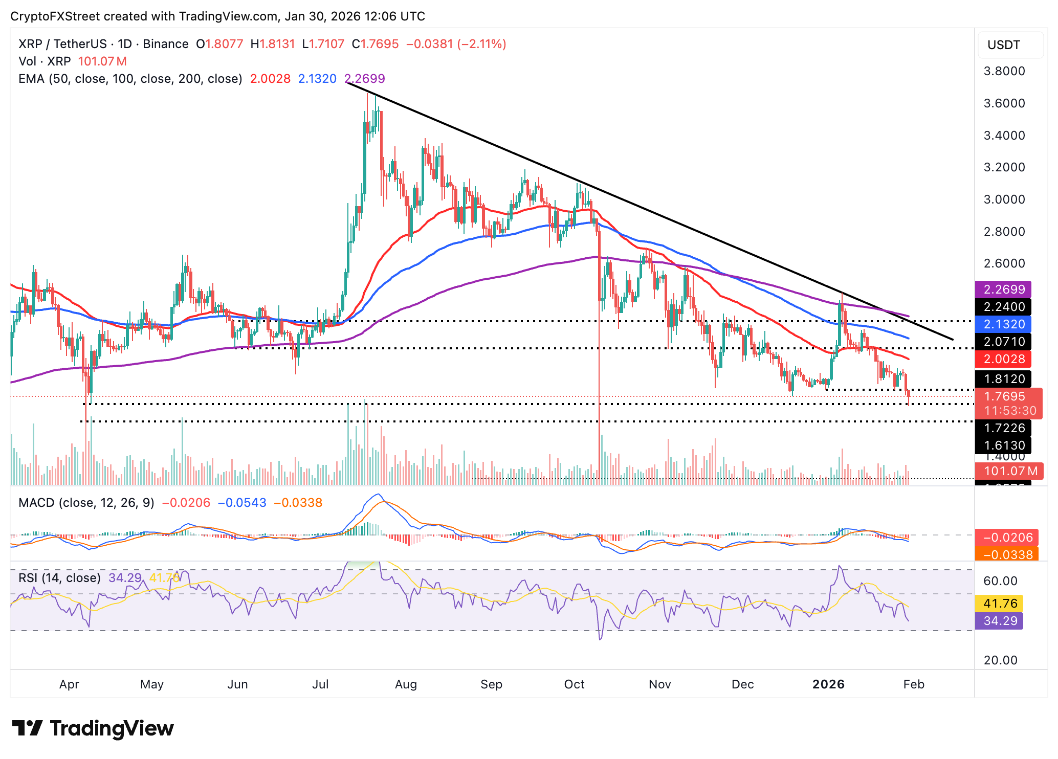 Solange XRP unter diesen Marken notiert, bleibt das kurzfristige Bild klar bearish. Hält der Druck an, rückt das April-Tief bei 1,61 US-Dollar wieder in den Fokus.