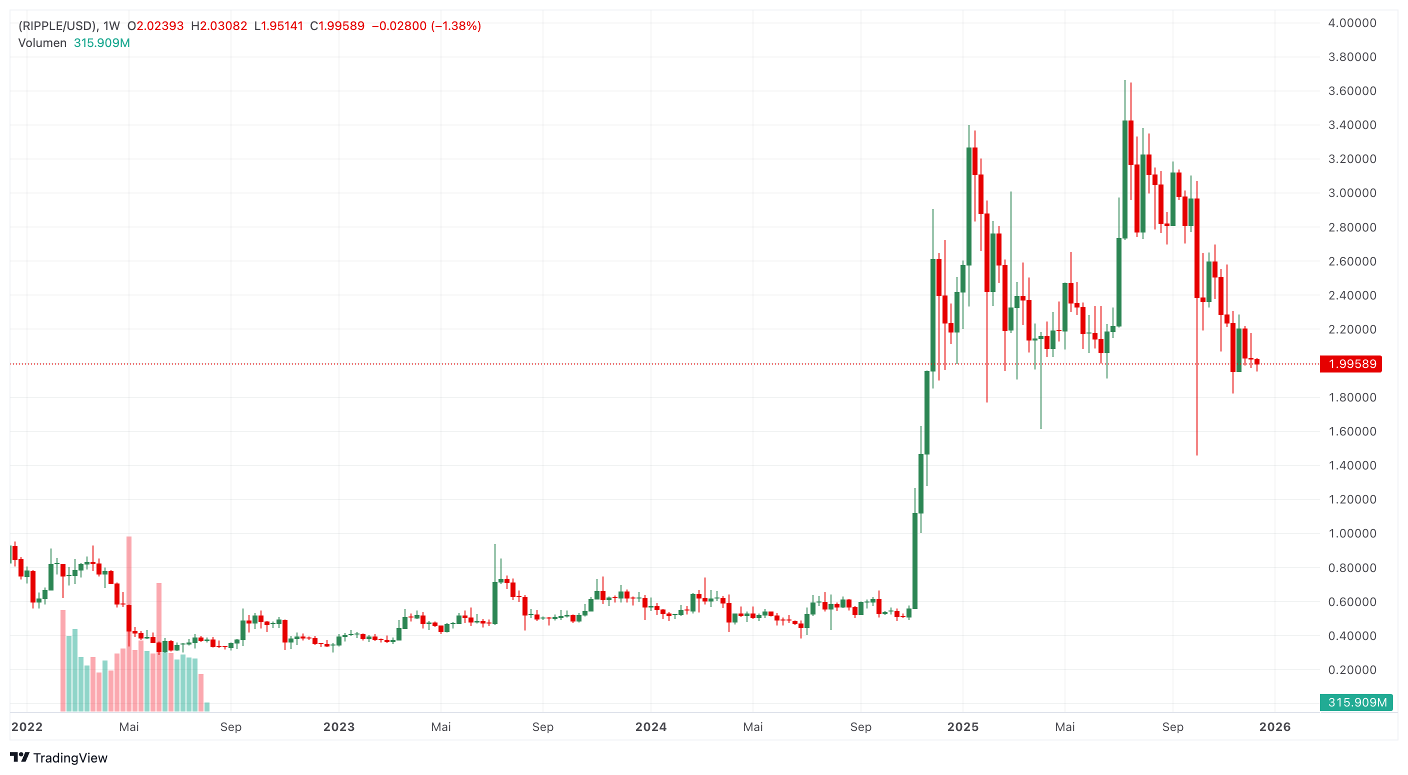 Der XRP-Kurs wirkt auf den ersten Blick enttäuschend. Seit Tagen geht es kaum vorwärts, der Preis schwankt, Hoffnung kommt auf – und wird direkt wieder kassiert. Aktuell notiert Ripple bei rund 1,99 US-Dollar. Doch genau jetzt lohnt es sich hinzusehen.