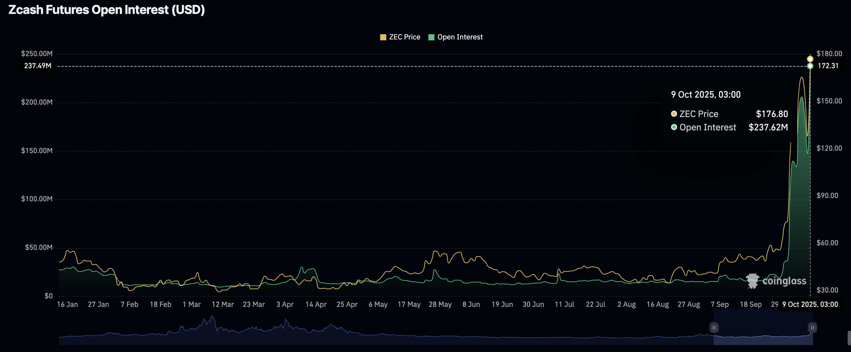 - Das Interesse der Privatanleger an ZEC steigt sprunghaft an, da die offenen Positionen in Futures am Donnerstag 237 Millionen US-Dollar erreichen.