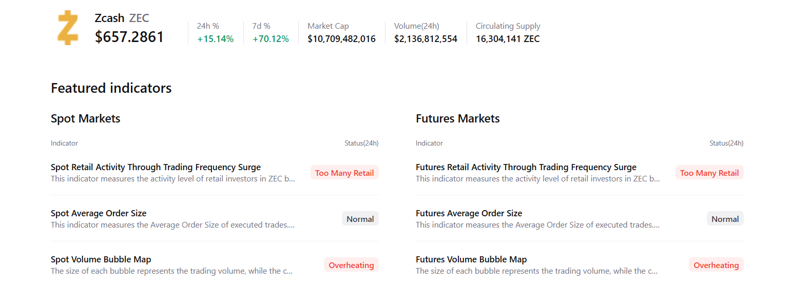 Trotz der optimistischen Aussichten für ZEC zeigen die zusammengefassten Daten von CryptoQuant einige Anzeichen für Besorgnis, die es zu beachten gilt. Sowohl der Spot- als auch der Terminmarkt zeigen Anzeichen für eine mögliche Überhitzung der Einzelhandelsaktivitäten.