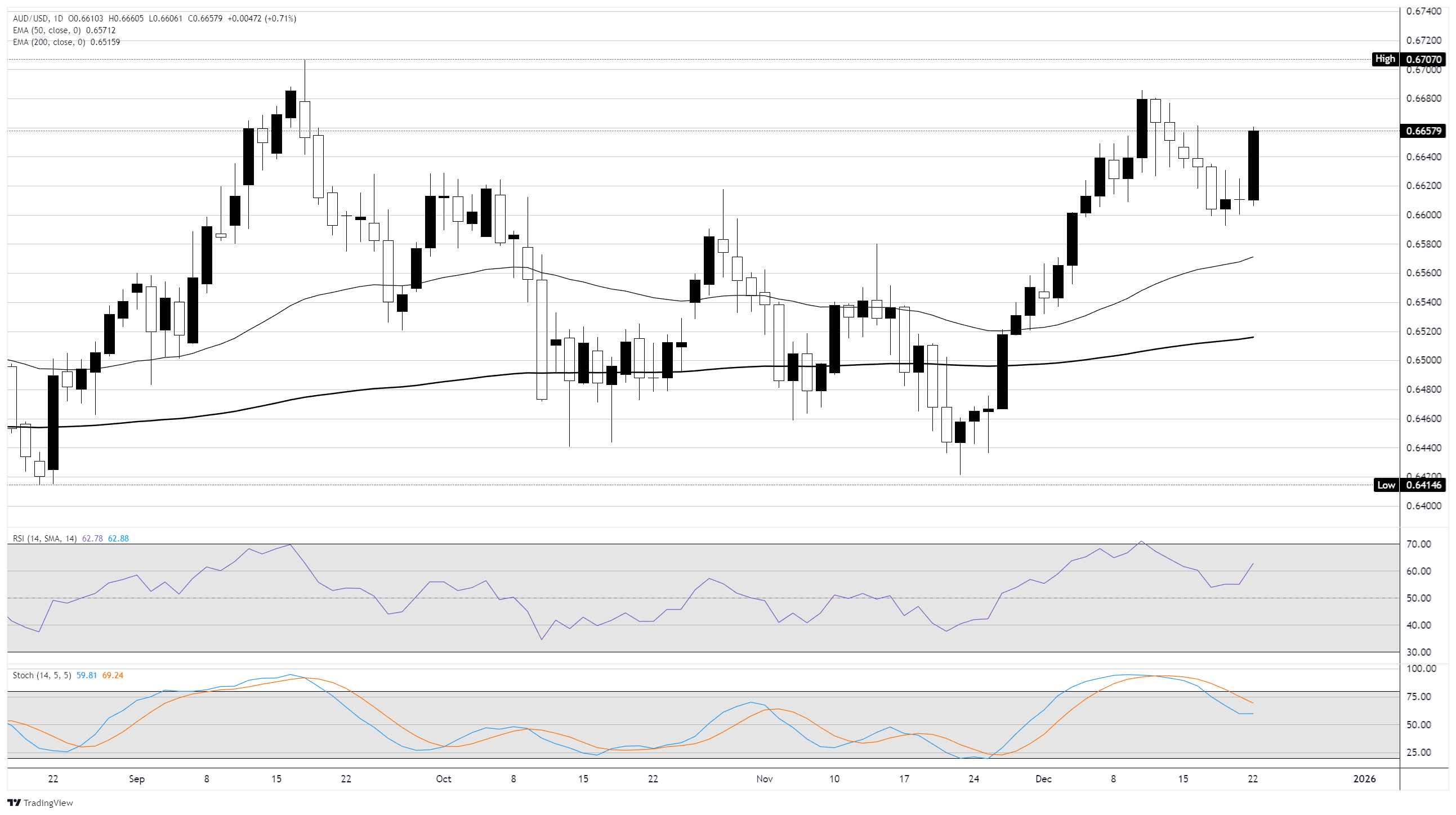 AUD/USD stieg am Montag und kletterte zurück in den Bereich von 0,6660 nach einem längeren kurzfristigen Rückgang. Der Australische Dollar (AUD) erhielt einen Rettungsanker durch breite Zuflüsse in den Greenback, die den sicheren Hafen US-Dollar (USD) auf dem Rückzug sehen, während die Feiertagsschließung naht.