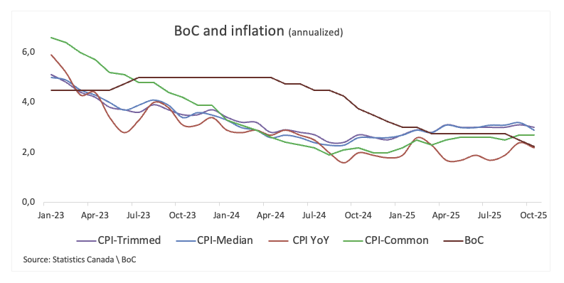 Alle Augen werden auf den Inflationsbericht am Montag gerichtet sein, da Statistics Canada die VPI-Zahlen für Oktober veröffentlicht. Die Daten werden der Bank of Canada (BoC) ein dringend benötigtes Update zu den Preisdruckverhältnissen vor ihrer Sitzung am 10. Dezember geben, bei der von den Entscheidungsträgern allgemein erwartet wird, dass sie die Zinsen bei 2,25% stabil halten.