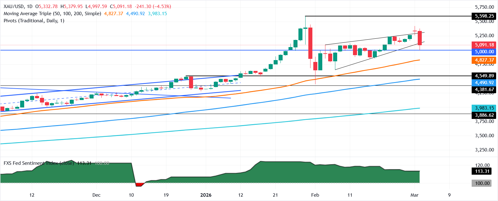 XAU/USD technische Perspektive: Gold bleibt bullish, trotz Test von 5.000 $