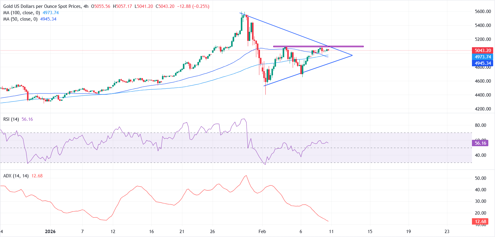 Gold (XAU/USD) kämpft am Dienstag um die Richtung, während die allgemeine Handelsaktivität aufgrund fehlender marktbewegender Katalysatoren gedämpft ist. Zum Zeitpunkt der Erstellung dieses Berichts wird XAU/USD bei etwa 5.043 USD gehandelt und hält sich stabil, nachdem es während der frühen asiatischen Sitzung kurz unter die psychologische Marke von 5.000 USD gefallen war.