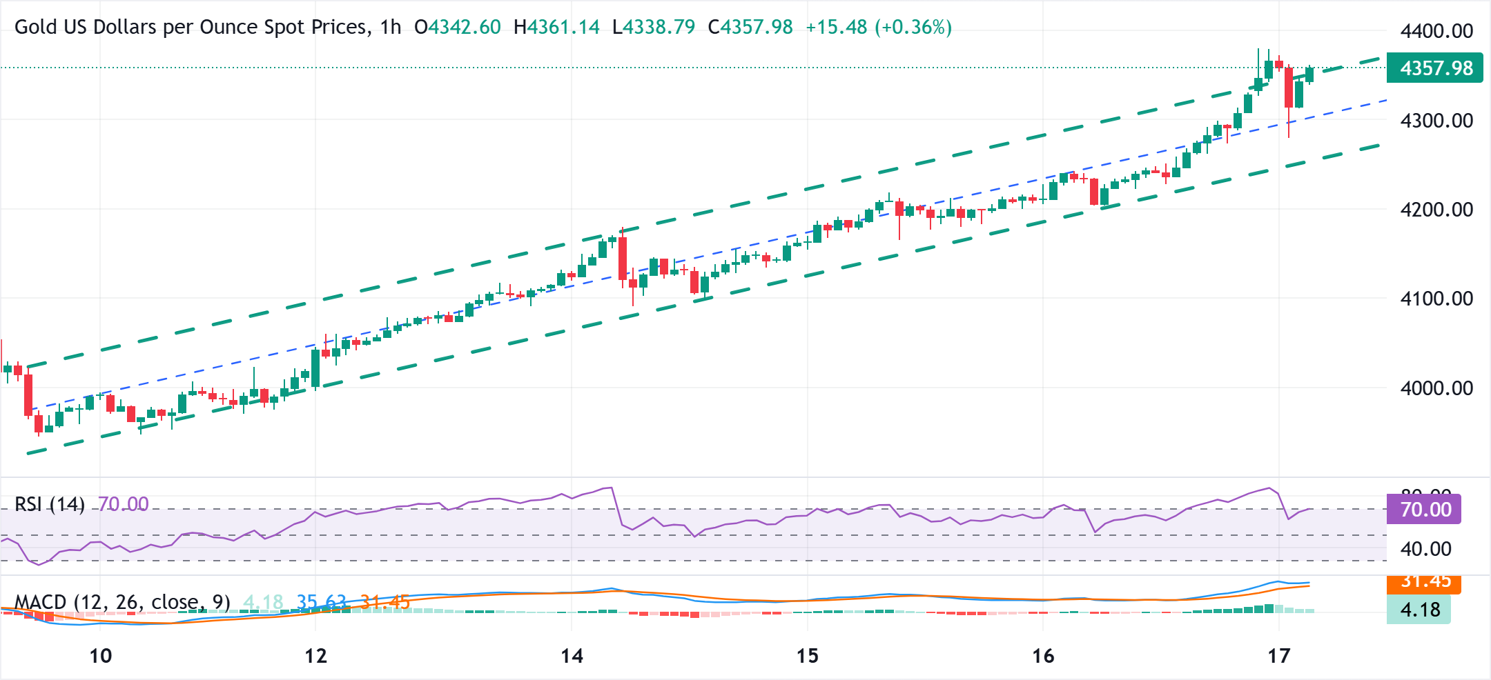 Der tägliche Relative Strength Index (RSI) bleibt deutlich über der 70-Marke. Dies könnte die XAU/USD-Bullen dazu veranlassen, einige Gewinne mitzunehmen und einen scharfen Rückgang auszulösen. Das gesagt, könnte jeder korrigierende Rückgang unter die 4.300 USD-Marke weiterhin etwas Unterstützung in der Nähe des Tiefs der asiatischen Sitzung, rund um die 4.280-4.279 USD-Region, finden. Allerdings könnte ein gewisser Verkaufsdruck den Goldpreis in Richtung der 4.235-4.230 USD-Region auf dem Weg zum nächtlichen Tief, rund um die 4.200 USD-Marke, ziehen. Letzteres sollte als wichtiger Wendepunkt fungieren, der, wenn er entscheidend durchbrochen wird, den Weg für tiefere Verluste ebnen sollte.