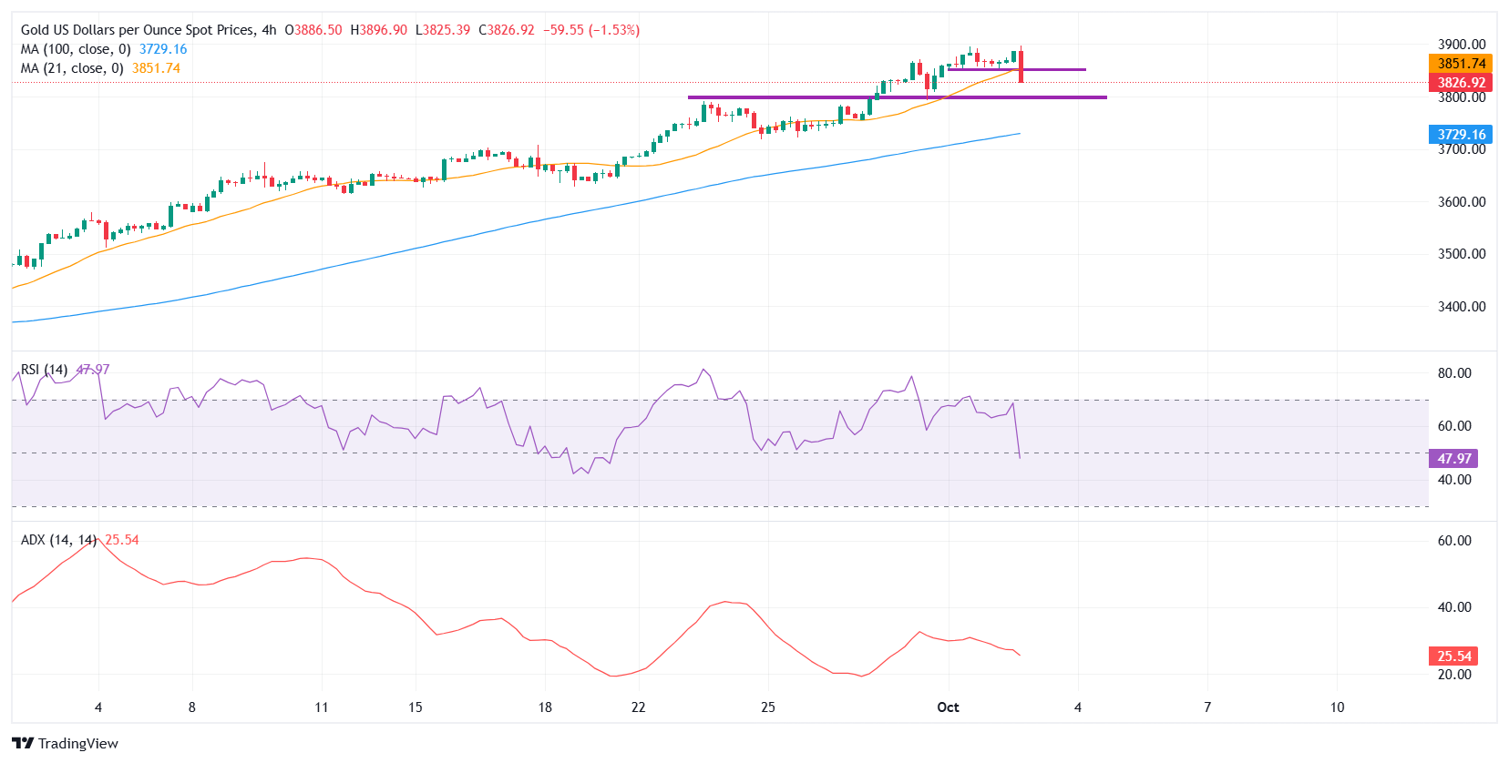 Die 3.850 USD-Marke fungiert nun als unmittelbarer Widerstand, verstärkt durch den 21-perioden Simple Moving Average (SMA) auf dem 4-Stunden-Chart. Die nächste Unterstützung liegt bei der psychologischen Marke von 3.800 USD.