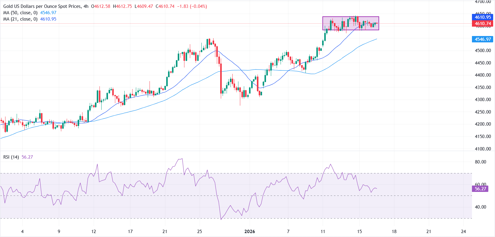 Technische Analyse: XAU/USD konsolidiert sich nahe $4.600, während der RSI nachlässt