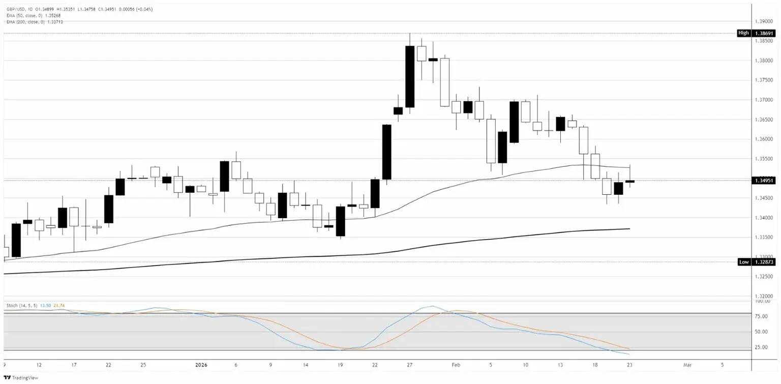 GBP/USD verzeichnet am Montag Gewinne von 0,31%, nachdem der Oberste Gerichtshof der USA die von Präsident Donald Trump unter dem International Emergency Economic Powers Act (IEEPA) ausgerufenen Zölle abgelehnt hat. In der Zwischenzeit hält die Unsicherheit über die Handelspolitik den US-Dollar (USD) unter Druck. Das Paar handelt bei 1,3507, nachdem es sich von den täglichen Tiefstständen bei 1,3475 erholt hat.