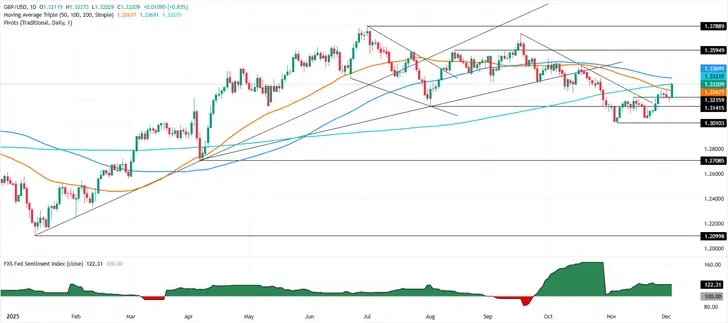 Schwächere US-Wirtschaftsdaten in dieser Woche, einschließlich des Manufacturing PMI und der ADP-Beschäftigungszahlen, haben die Argumentation für eine Zinssenkung der US-Notenbank bei der Sitzung im Dezember gefestigt. Dies könnte wiederum den Greenback belasten und dem wichtigen Paar Rückenwind geben. Weiterlesen...