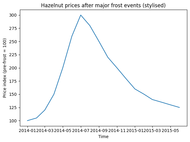 Die Geschichte gibt einen Hinweis darauf, was als Nächstes passiert. Nach ähnlichen Frostereignissen in 2004 und 2014 verdreifachten sich die Haselnusspreise mehr als. Im Fall von 2014 begannen die Preise sofort nach dem Frost im März zu steigen, erreichten Ende April bis Anfang Mai 2015 ihren Höhepunkt und fielen dann innerhalb von ein bis zwei Monaten um etwa 50 %, als die Nachfrage sich anpasste und Bestände freigegeben wurden.