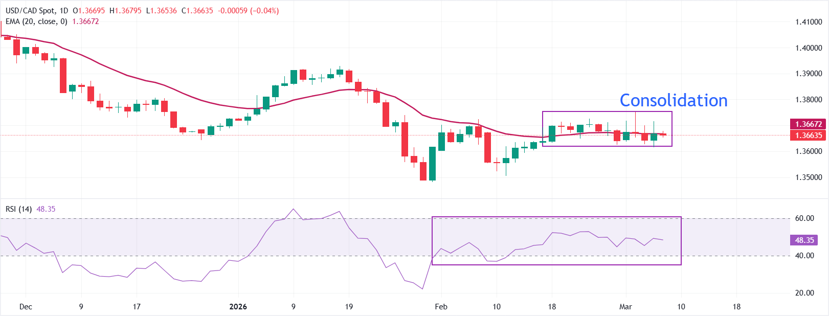 - USD/CAD konsolidiert sich um 1,3660, während die Investoren auf die US-NFP-Daten warten.