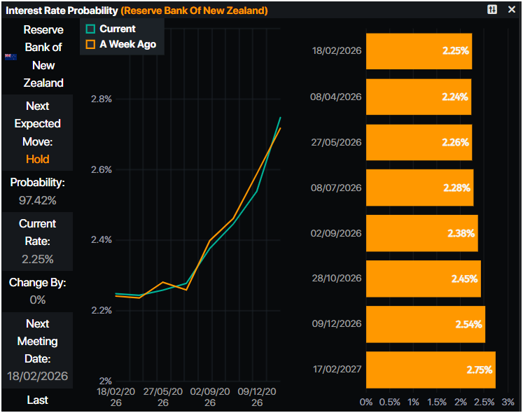 Eine Umfrage von Reuters ergab, dass einunddreißig befragte Ökonomen vorhersagten, dass die RBNZ den Leitzins bei der Sitzung am 18. Februar stabil bei 2,25% halten wird.